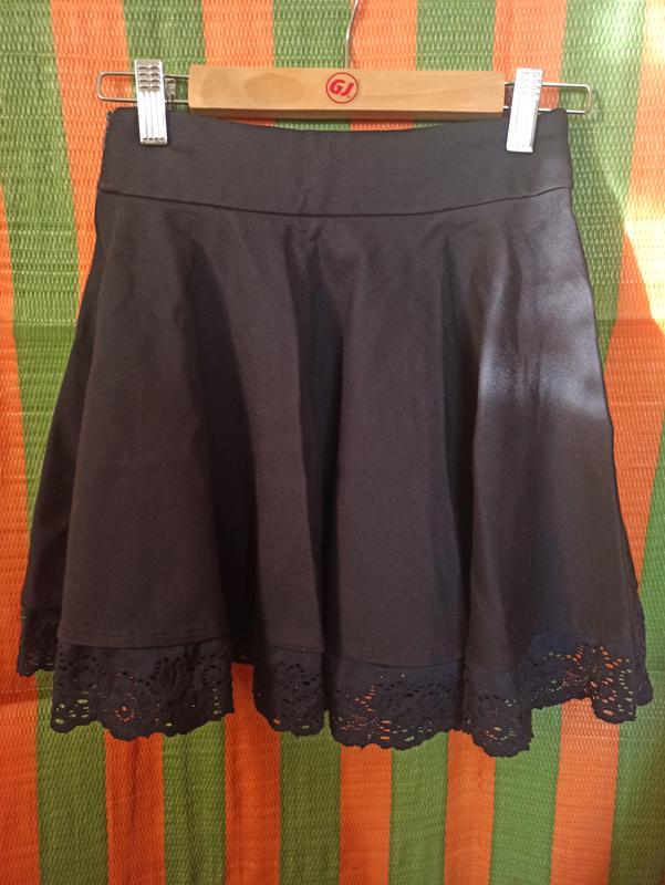 Красива спідниця-кльош з мереживом по низу, матеріал щільний. є маленький нюанс,останнє фото