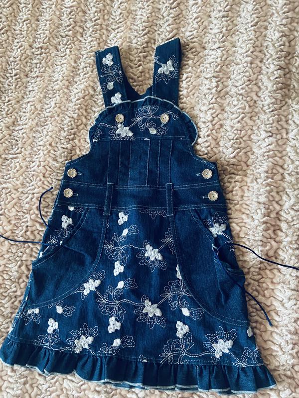 Джинсовий сарафан, куплений в Канаді. Дуже якісний джинс, оригінальний вишитий орнамент, з кишеньками.