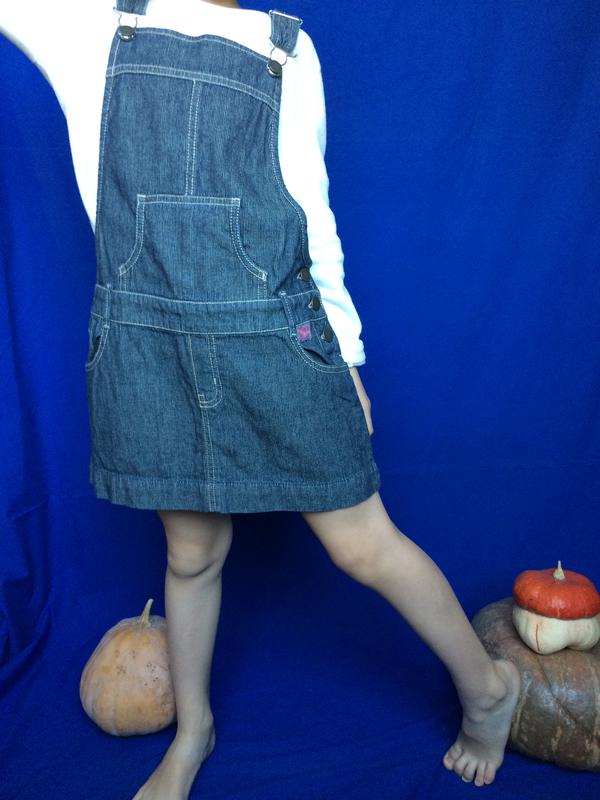 Спідниця, сарафан джинсовий на бретелях для дівчинки. Комфортна джинсова тканина, затишна до тіла бавовна 100% бавовна . На гудзиках, збоку, і ззаду є два повноцінних кишені . Довжина( регулюється) орієнтовно 65 див. пояс - двосторонні гудзики, 36 см, можна регулювати, ПОБІДИ 42 см На бірці написано розмір 10-11 років, але потрібно орієнтуватися на свої індивідуальні параметри. Відповім з задоволенням на ваші запитання.