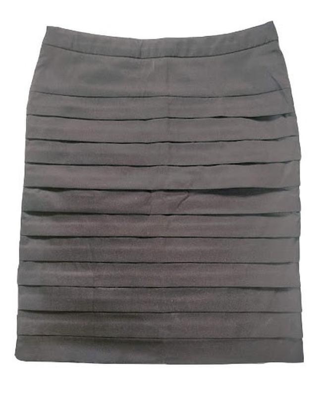 Зріст 154 см (повномірна) - довжина по боковому шву 51 см, об'єм талії 37 см Приталені гладка спідниця-олівець складного крою на підкладці . По всій довжині закладені горизонтальні складки. Застібається на блискавку по бічному шву. Об'єм талії регулюється внутрішньою потайною гумкою.