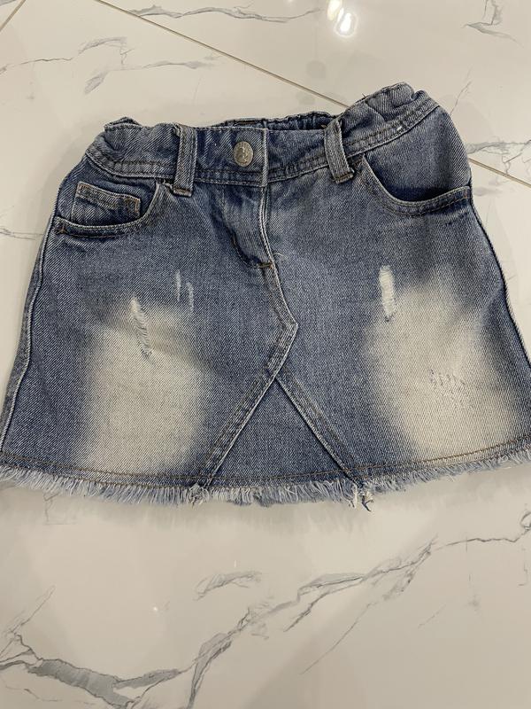 Джинсовая юбочка фирмы Denim Co. Размер указан 4-5 лет, мы носили на 6-7 (дочь худенькая) Есть утяжка, замеры на фото