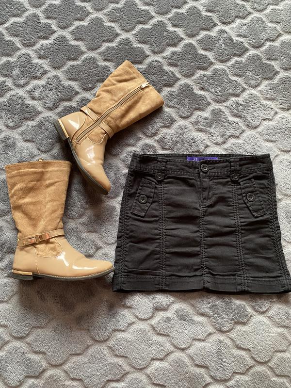 Застібається на блискавку і гудзичок На талії манжета середньої ширини на ній гачки для ременя Є чотири кишені-дэкор По ній вдлину шви-рубці-дэкор Тягуча щільність середня Підійде на 4-8 років орієнтуйтеся по замірах З нюансів-ушивалась на фото зазначено (не критично можна розгладити) Фасон спідниці підійде і з ошатною блузою або з светром свитшотом або в'язаним Довжина 29,4 см) Піт 33,4 см) Побіди 38,2 см) Знизу 40 см)