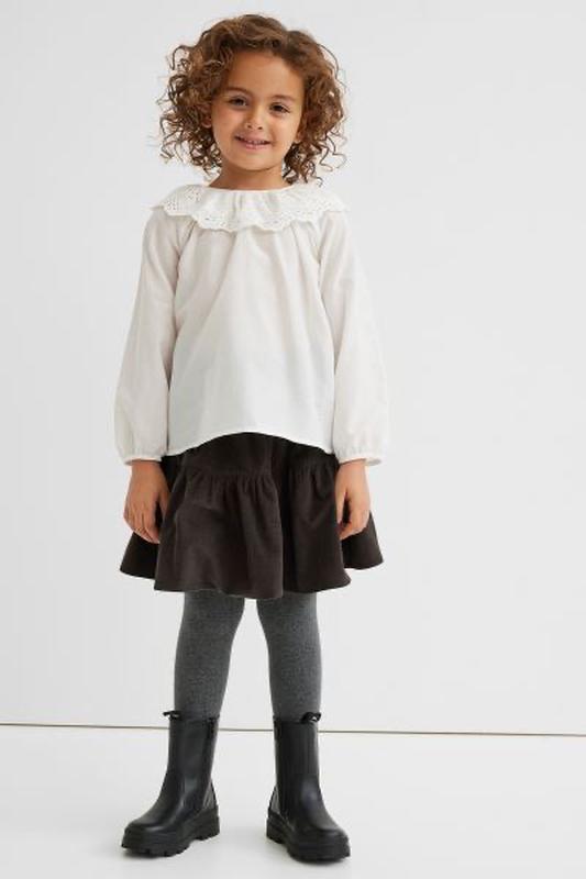 Спідниця h&m микровельвет Зручна спідниця-трапеція з м'якого бавовняного вельвету з гумкою і невеликий оборкою по верху талії. Відрізний поділ на збірці для додаткового обсягу. 6/8 років пояс 28,5 довжина 38,5 8/10 років пояс 30 довжина 42,5 Колір dark grey