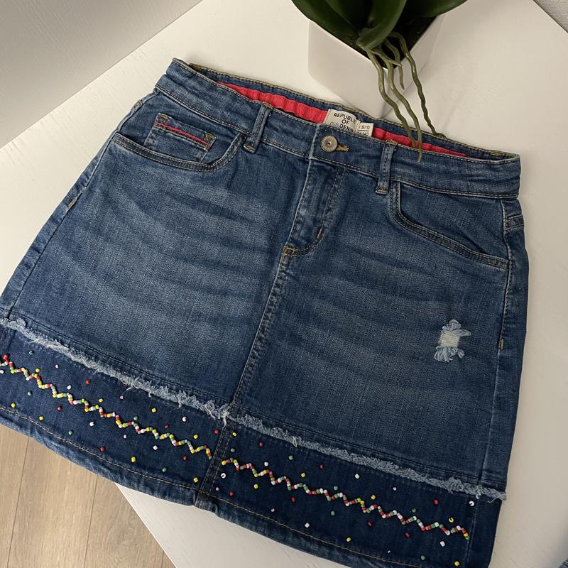 Джинсова спідниця на дівчинку 9-10 років, стан ідеальний, ріст 140 см
