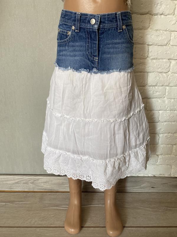 Ярусна спідниця на дівчинку, джинсова спідниця , спідниця на дівчинку 5років Campus. Довжина 52см, півобєм талії 26-31см, півобєм стегон 34см