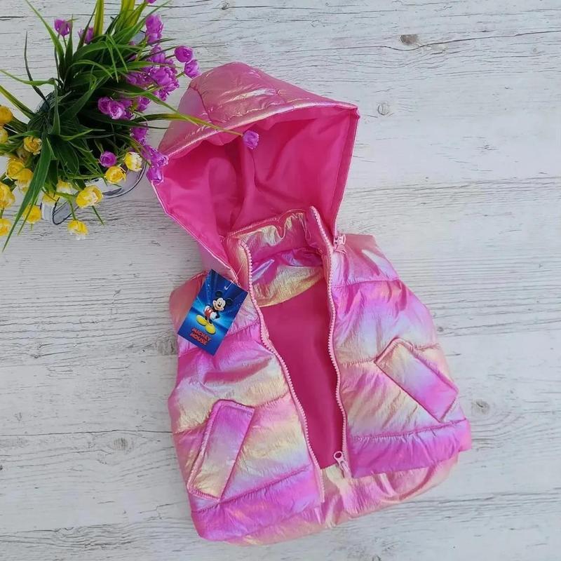 Розовая голограма жилетка Состав: плащевая ткань голограмма подкладочная ткань принтовання. капюшон отстегивается два функциональных кармана спинка удлинена на 5 см. Учитывайте при замерах!!! Виміри: 86 Довжина по спинці 34, ширина 33 86-92 Довжина по спинці 39 ширина 34.5 92-98 Довжина по спинці 42 ширина 35 98-104 довжина по спинці 44. ширина 35.5 104-110 Довжина по спинці 49 ширина 36.5 110-116 довжина по спинці 52.5 ширина 39,5 Увага!!! Жилетка подовжена на 4 см із ззаду!! Враховуйте при вимірах ВІДПРАВЛЕННЯ З ФАБРИКИ!