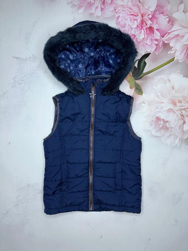 Жилетка YIGGA Стьобана модель із наповнювачем Підкладка поліестер із заведеною зіркою Висока горловина Капюшон і хутро незнімні 2 кишені Стан нової без бирки 🔹9-10 лет/134-140 Довжина 50. ПОГ 41 🔹без бирки Довжина 55. ПОГ 44