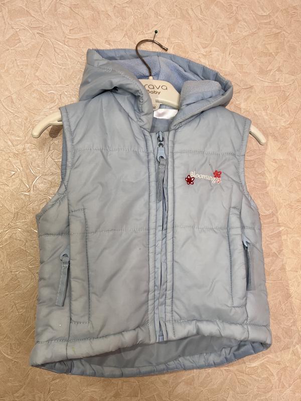 Желетка для дівчинки Є кишеньки на замочку 80-86(1-1,5р) Є невеличка пляма на капішоні та біля кишені Ніжно блакитного кольору(фото не предає колір)