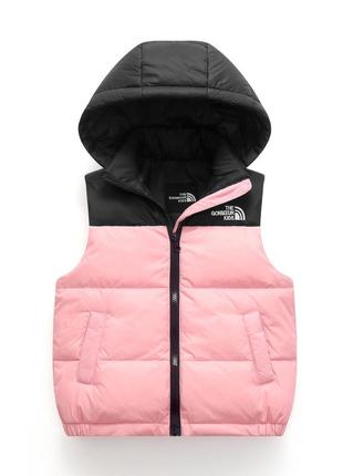 В наявності Теплий жилет на холофайбері. Підкладка нейлон. Капюшон з'ємний. Розміри пишу за биркою, дивіться заміри. р.120см.- довж.48см., шир. 42см. р.140см.- довж.54см., шир. 46см. Заміри робили однієї ростовки, допустима похибка 1-3см.