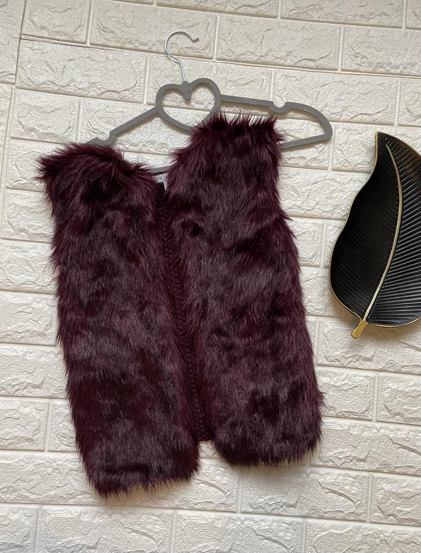 Жилетка хутряна бордового кольору стильна на дівчинку 8-9 років