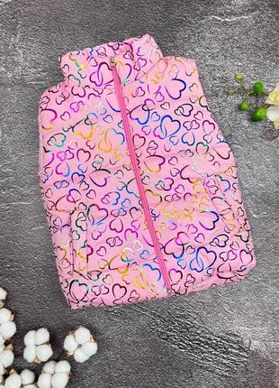 "🌸Жилет Сердечки рожевий. Є кишеньки. Застібка на замочку під горлишко. Утеплення - тонкий шар синтепону. Верх- болонь. Виробник Туреччина. 📐Заміри: 92 - довж. 34 /напівобхв. 31 98 - довж. 36 /напівобхв. 32 104 - довж. 38/напівобхв. 33 110 - довж. 39 /напівобхв. 35 💰Ціна 480 грн 116 - довж. 40/напівобхв. 36 122 - довж.43 /напівобхв. 37 128 - довж. 46/напівобхв. 39 134 - довж. 48/напівобхв. 41 💰Ціна 500 грн