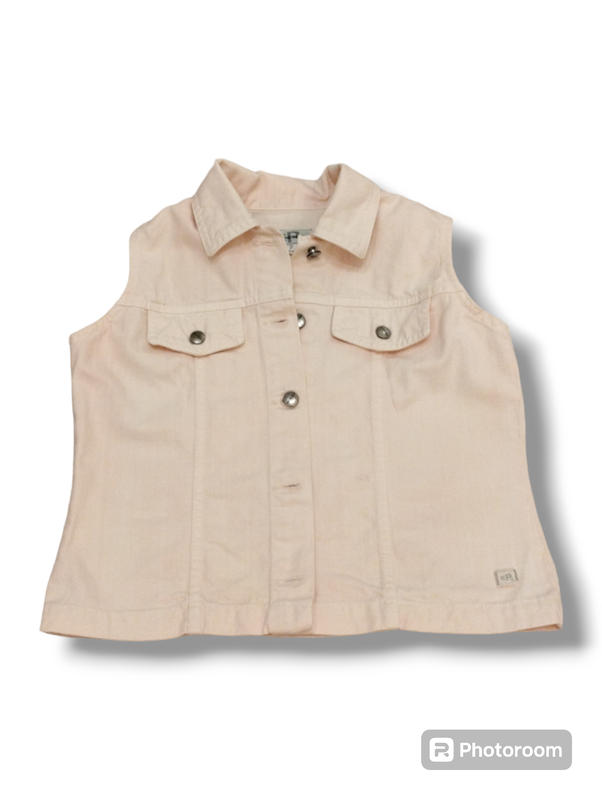 Джинсовий жилет світло-рожевого кольору. Бренд Eddie Pen Склад бавовна. Розмір вказаний 7років. Довжина 40 см, Напівобхват грудей 38 см. Стан дуже добрий!