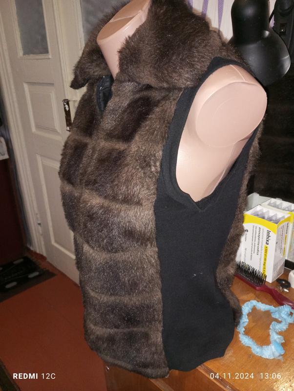 Жилетка в отличном состоянии. Размер 44. По бокам вставки тряпочные. Сама жилетка з штучного хутра. Застегивается на молнии.