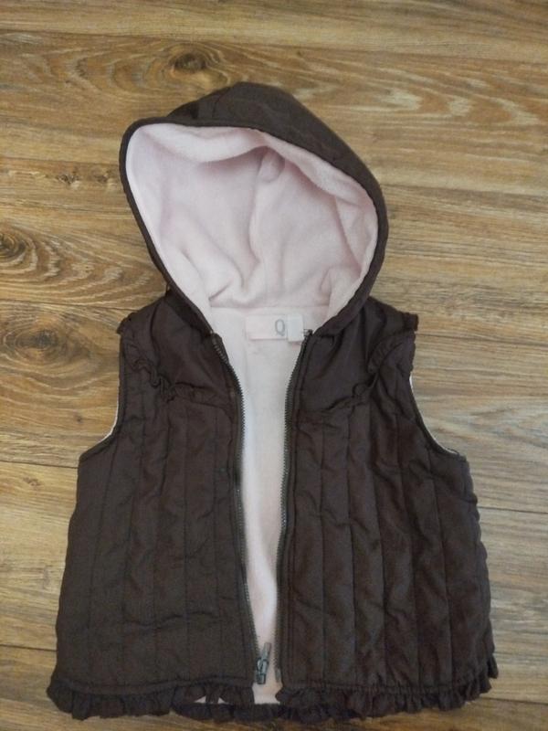 Жилетка для дівчинки в ідеальному стані. Гарного шоколадного кольору, на замочку. на півтора-два з половиною років. не товста. більше на теплу весну