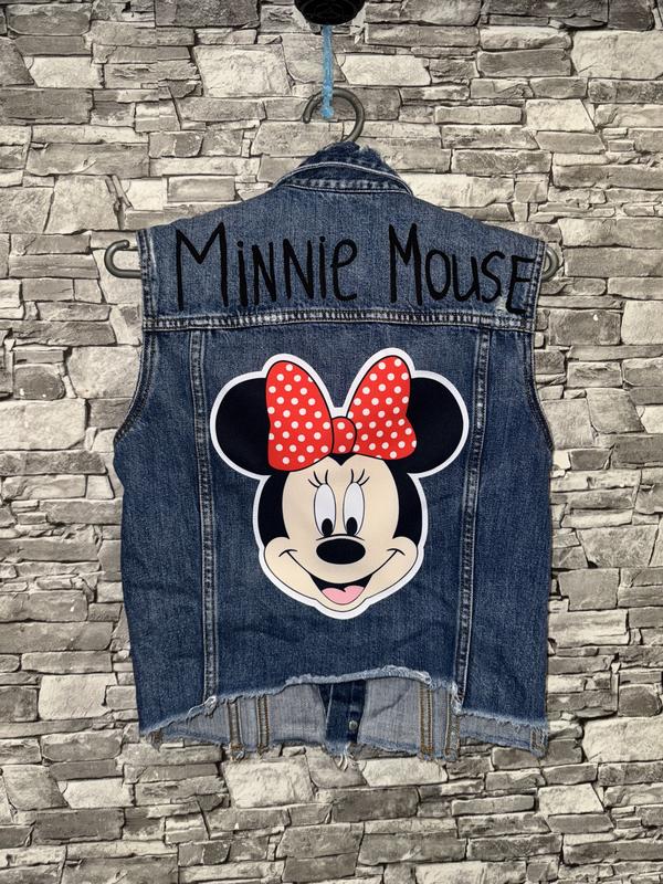 Джинсовая куртка минни маус, джинсовая жилетка, джинсовая куртка с рисунком, джинсовка, дж...
