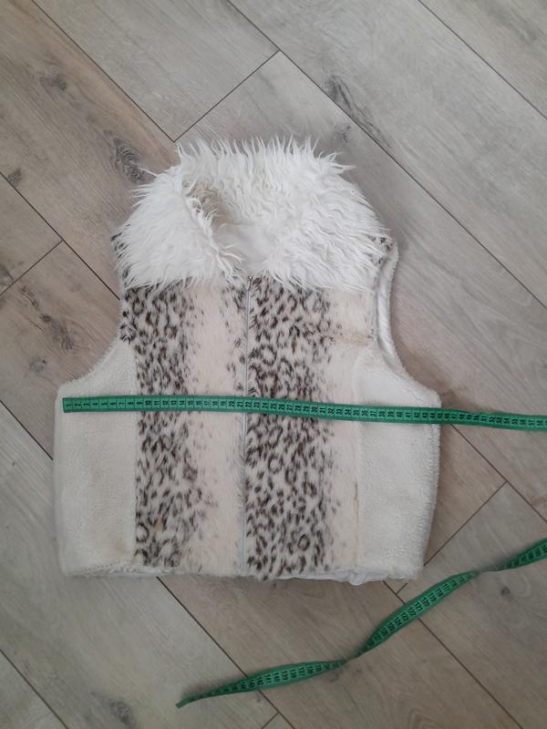 Жилетка в ідеальному стані. на дівчинку приблизно 7-8років. зручна, тепла, гарно виглядає. підкладка звичайна. ширина на фото.