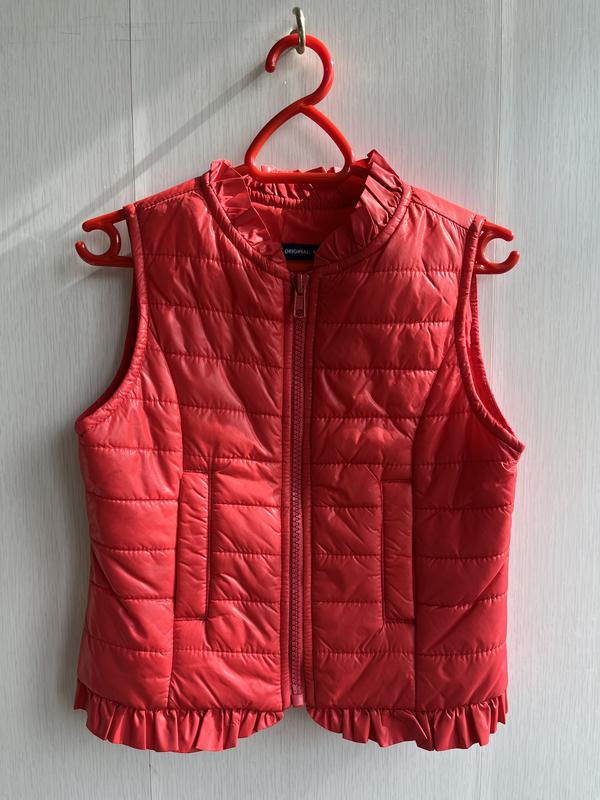 Фирменная жилетка для девочки, очень качественная, стильная, тоненькая, подойдет под любой наряд, не парит спинку, а защищает от продувания ветерка.