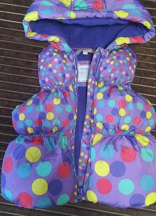 В ідеальному стані, носилася мало. Тепла дута жилетка, наповнювач синтепон Розмір по бірці 12-18 м Довжина 35 см Ширина під руками 30 см