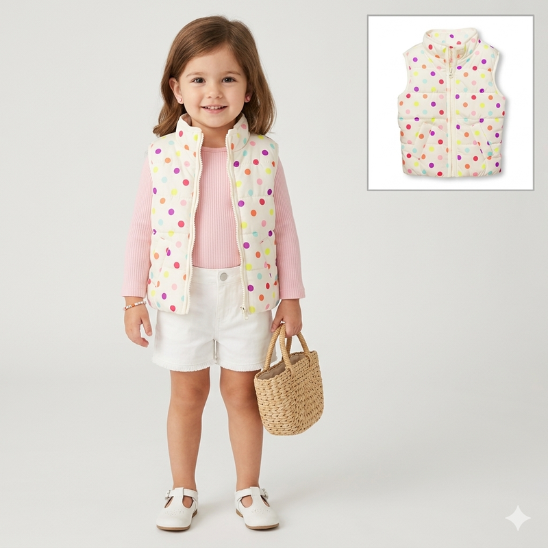 Жилетка для дівчинки жилет безрукавка на флісі горошок яскрава