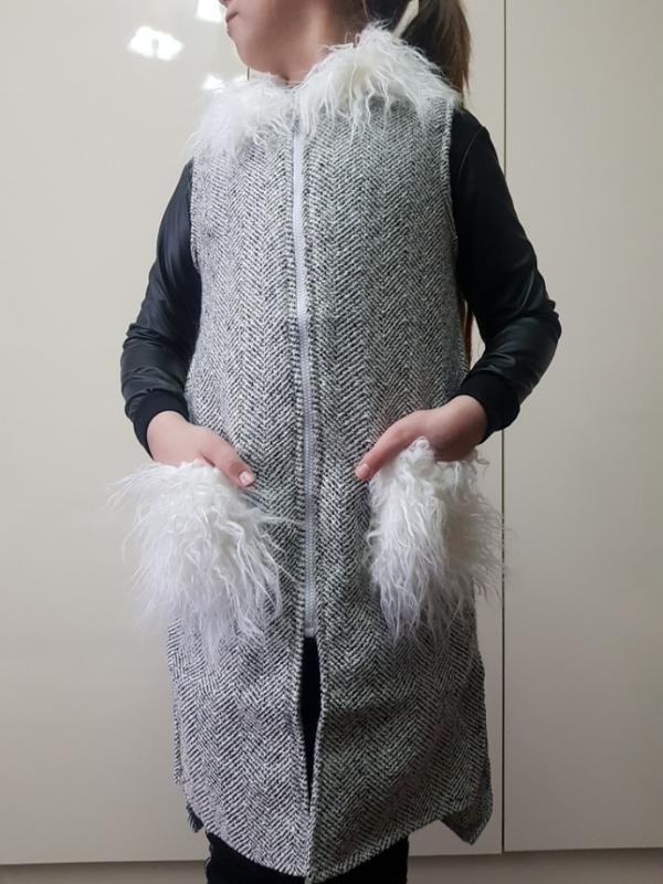 Дитяча жилетка з пальтової тканини без підкладу. Екохутро на рукавах та кишенях. В наявності є на вік від 7 до 12 років. Заміри Скину, звертайтесь)
