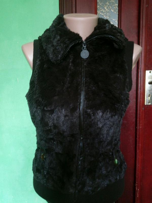 Жилетка гарно виглядає,тепленька є один нюанс на низу трошки счухалась шкірочка на фото видно все решту в чудовому стані. Довжина 56см. ПОГ 40см.
