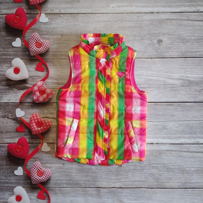 Тепла жилетка Topolino на дівчинку 5років р. 110. Довжина 49см. ЗА плечей 26см. ПО грудях 34см. Фірмова, якість супер. Вільний крій, тепла. На блискавці, липучки. Підкладка х/б. По боках кишені на липучках. Комірець стійка. На грудях малюнок вишивка. Ззаду світловідбивач у вигляді ❤ сердечка. По вазі дуже легка. Уздовж блискавки і верх комірця рюші. Водоотталкиваюшая і вітронепродувна жилетка. Красива, яскрава і зручна. Немає ні доказів, ні плям, ні катишів, стан нового. Заходьте, щоб подивитися наявний товар 💐Підписуйтесь, щоб бачити надходження нового товару 🛍Товар додаю кожен день 👭💖Економте час і гроші за доставку дивіться весь асортимент 😍🌺