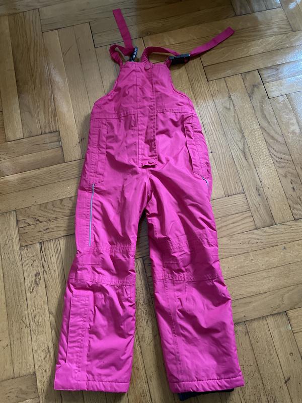 Теплий зимовий полукомбінезон з плащівки на дівчинку, б/у. На вік 5-6 років. Є недолік, плямка на штанині, на попці пришитий пінгвін.