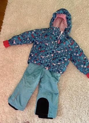Очень тёплый комбинезон на девочку! Яркий и красивый! Размер 86/92 см. Непромокаемый и непродуваемый, рукава на манжетах из флиса! Брюки регулируются на флисе внутри . Качество супер! Бренд Lupilu. На попе нужно отстирать , или полиняло или потерлось, это малозаметно .. Замеры: Брюки: длина по внутр шву-34 см; Длина сбоку –57 см; Длина по спинке – 67 см; Куртка: Длина по спинке – 40 см; Длина спереди – 36 см; Рукав от капюшона -38 см+ 4 см манжет Ширина под мышками –36 см.
