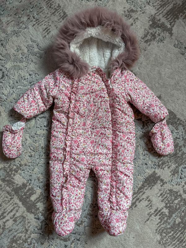Комбінезон у гарному стані, без нюансів, рукавички знімаються, на липучках, опушка на капюшоні пришивна!!! По бірці 3-6 міс, ми носили довше!!! Довжина до п'яточки 56 см Ширина 30 см Довжина руква від плеча 22 см