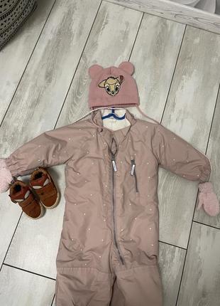 Комбінезон в ідеальному стані, рр 80( єдиний нюанс немає капюшона) але в подарунок дуже тепленька шапочка та рукавички. Комбінезон дуже зручний, на резинках знизу, має світловідбивні стрічки ззаду та спереду, носили при не великому мінусі. Усі виміри зроблю за потребою.