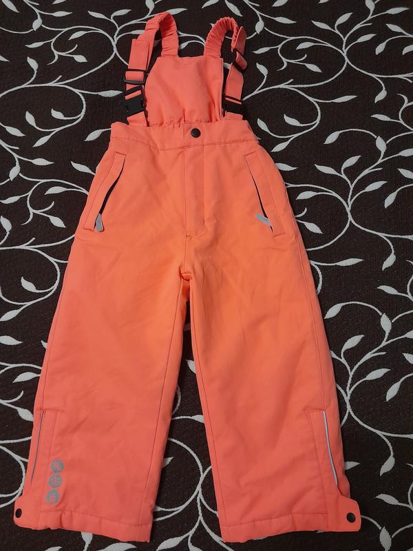 Полукомбинезон зимний на девочку 4 лет, фирмы 46 Nord. На синтепоне. Ремни тянутся и регулируются. Замеры: длина штанов по боковому шву 64см, длина внутреннего шва 40см, полуобхват пояса 27см не растягивая, полуобхват бедер 33см, ширина штанины по низу 19см. Без дефектов.