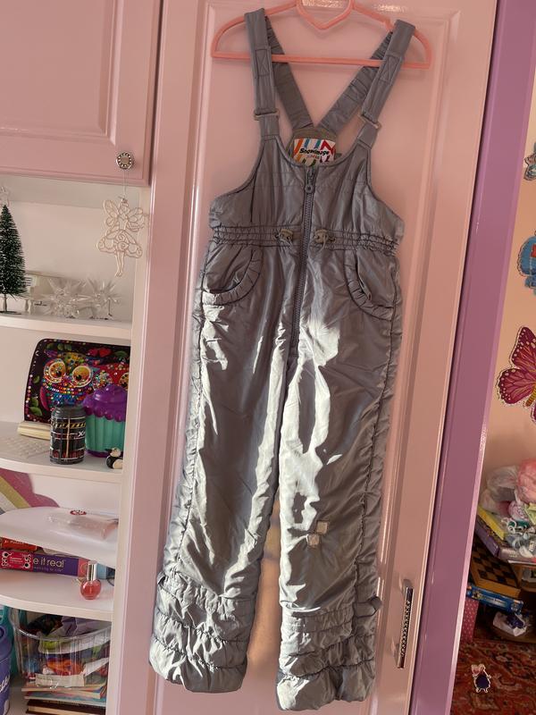 Напівкомбінезон після доньки Snowimage. Теплий та комфортний. Донька носила дві зими, в 6 та 7 років. На місцях колін і попи на гірках зробила зацепки і порвала. Зашито нашивками в тон. На фото видно. До напівкомбеза є курточка цієї ж фірми рожевого кольору. Стан курточки ідеальний, дивіться в моїх оголошеннях.