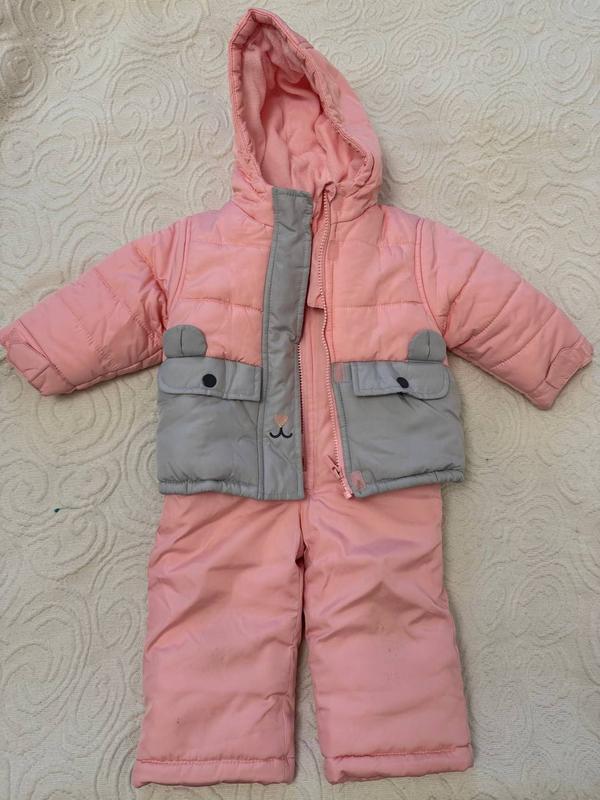 Теплий і зручний комплект від улюбленого бренду дитячого одягу Carter's: штани-комбінезон + куртка. Розмір на етикетці: 12 міс. Стан практично ідеальний. Дуже стильний і теплий.