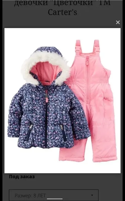 Продам зимовий комбінезон Carter's. Стан-відмінний. На бирці написано розмір 4Т. Орієнтуєтеся на виміри Штани довжина без бретельок 77 см Кроковий 37 см Довжина куртки 45 см Ширина 38 см Рукав 37 см