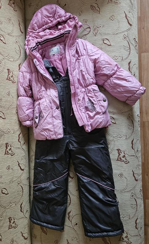 Дитячий комбінезон на дівчинку розмір 110 на зиму. Складається з курточки та теплого низу. Можливо знайдеться мєхова вставка на капюшоном до нього, але не точно. В рукавах є манжети, що не пропускають холод всередину. Є декілька недоліків (плямка на капюшоні, відпала кнопочка знизу на курточці та штани трохи зашивались ззаду, проте це майже непомітно). Зрозуміло, що стан б/в, віддамо за символічну плату.