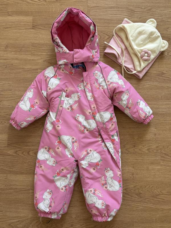 Продам дуже гарний зимовий комбінезон для дівчини. В комплекті є шапочка та баф (купляла з квіточкою та вушками шапку, так як на комбінезоні є малюнок киці з квіткою). Все дуже тепле та в ідеальному стані. В цьому комплекті вашій дитині холодно точно не буде (перевірено). Купляла все в новому стані, носили обережно. Не хвилюйтеся, що рожевий колір (все змивається серветками вологими, ручне прання окремої ділянки чи весь комбінезон - все змивається дуже добре). Вік дитини - 1,5 роки (86-92 розмір) Відправка новою поштою/укр.поштою.