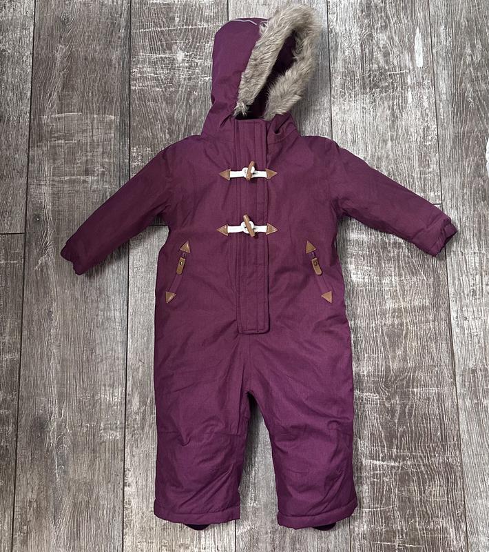 Зимовий комбінезон 9-12м(80р) Заміри: довжина 70см( без капюшона), крок 23,5см, ширина 34см, рукав від плеча 30см. Грудка утеплена флісовою підкладкою, теплий та зручний, стан нового