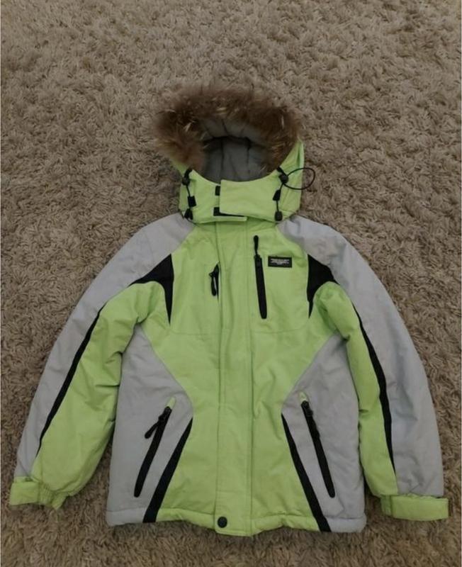 Зимовий дуже теплий костюм на 140 куртка салатова з світло сірим капюшон та хутром окремо відстібається комбінезон чорний окремо спинка відстібається зі шлейками-коліна не протерті стан відмінний вся фурнітура ціла підходить хлопцям та дівчатам
