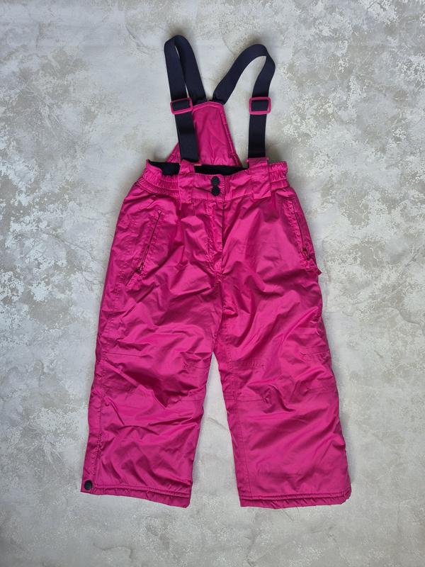 Яскраві, теплі, комбінезонні, зимові штани. Заміри та склад на фото. В гарному стані, з дефектів тільки трішки потягнулися лямки, на користування не впливає (останнє фото).