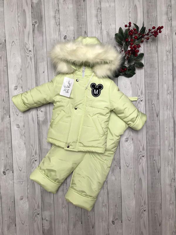 В НАЯВНОСТІ: 86см - 4шт 92см - 3шт 98см - 1шт 104см - 1шт Наш комбінезон неодмінно сподобається вашому малюку, адже він зручний та дуже теплий.Якісна тканина!!! Що саме головне він розрахований не на євро зиму. а на холодну))В ньому ваша крихітка не змерзне!!!!Комбінезони перевірени1 роками)) хутро відстібається! Куртка Верх: м'яка, якісна плащівка 100% поліестер, захищає від вітру і снігу! Низ: рукава - підкладка фліс м'яка м'який і теплий, куртка набивна шкурка (80% натуральної вовни і 20% допоміжних речовин) Наповнювач синтепон на силіконовій основі нового покоління, дуже теплий і легкий (рукава 150+ 200, куртка 200) капюшон -пришивний Узлісся - штучна, біла і пухнаста. НАПІВКОМБІНЕЗОН: Верх - м'яка і якісна плащівка 100% поліестер, захищає від вітру і снігу. Низ -Підкладка з м'якого і теплого флісу Наповнювач подвійний (100 + 150) синтепон на силіконовій основі нового покоління дуже теплий і легкий! Бретелі на гумці і що регулюються на кілька див. На блискавці. За спинці на поясі є резиночка сов..