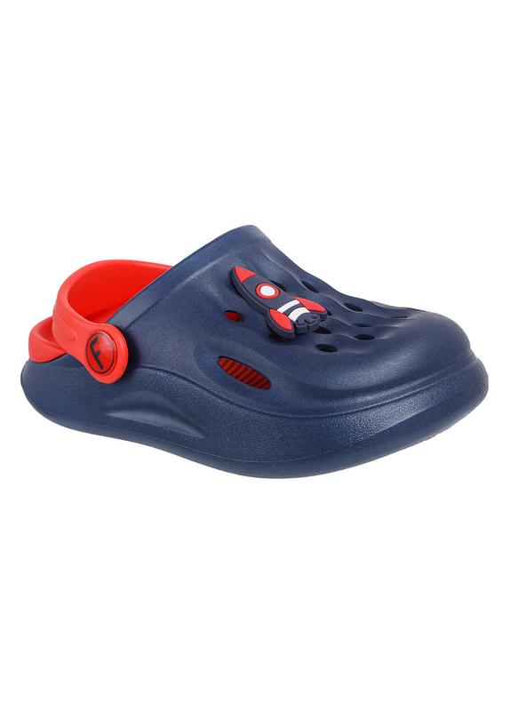 Пляжне взуття для хлопчиків Flamingo 221S-F9-3141 у формі сабо, з заднім ременем, що рухається, для зручності посадки, синьо - червоного кольору, з прикрасою, у вигляді ракети. Легкі, виготовлені з безпечного матеріалу, з отворами для вентиляції та зливу води та потовщеною підошвою.. Заміри устілок: 24 - 15 см 26 - 16,5 см 27 - 17 см 28 - 17.5 см 29 - 18,3 см