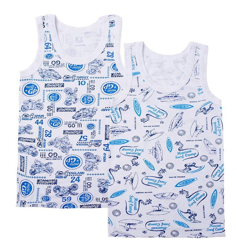 Майка для хлопчика Тканина: кулір Зріст - 104.110.116см розмір 104: довжина виробу- 43 см, ширина виробу по лінії грудей - 26 см, розмір 110: довжина виробу- 45 см, ширина виробу по лінії грудей - 27 см, розмір 116: довжина виробу- 46 см, ширина виробу по лінії грудей - 28.5 см,