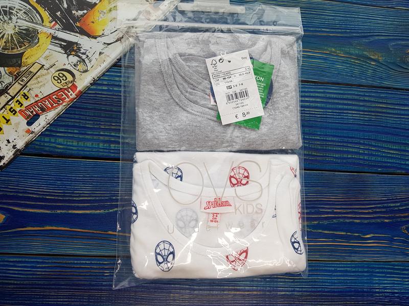 Набір якісних фірмових натільних майок для хлопчика бренда OVS (Італія). Тканина м'яка та приємна для тіла. Зберігає тепло — можна носити як підчеплення. Ідеально для сну та просто для дому. Набір із 2 штук. ВАЖНО! Всі дітки різні, переконливе прохання орієнтуватися не за віком, а за вимірами! Розмір: 98-104 (3-4 роки) Довжина: 43 см НОГ: 26 см Склад: 100% cotton Оплата на карту або накладеною платежею за умови невеликої передоплати, на покриття вартості доставки посилки. Доставка по Україні здійснюється "Укріплювачем", "Новою поштою". Відсилання впродовж 1-2 робочих днів із моменту оплати. Без торгу. Завдяки Вам, що зайшло до нашого магазину! Пишіть, буду рада відповісти Вам на всі питання)