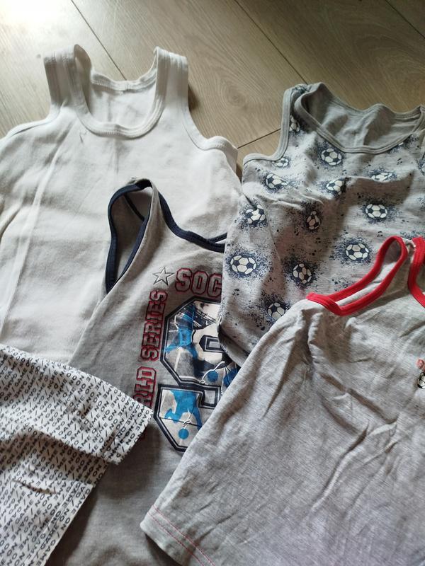 Майки на мальчика.Шесть штук.На два,три годика.Длина 36 см.Цена за все