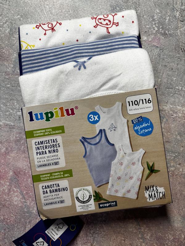 Набір гарних, яскравих та дуже якісних натільних майок для хлопчика на розмір 110-116 (4-6 років) 100% бавовна Зносостійкі та стійкі до багаторазового прання✅ Лупілу, Німеччина