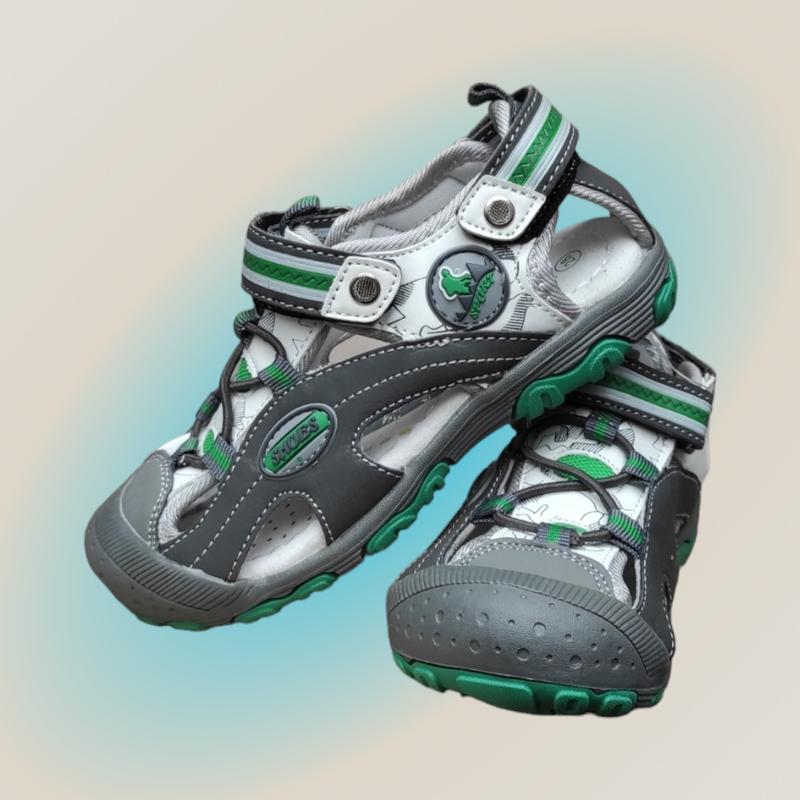 Босоніжки сандалії для хлопчика закриті спортивні сірі, зелені липучки