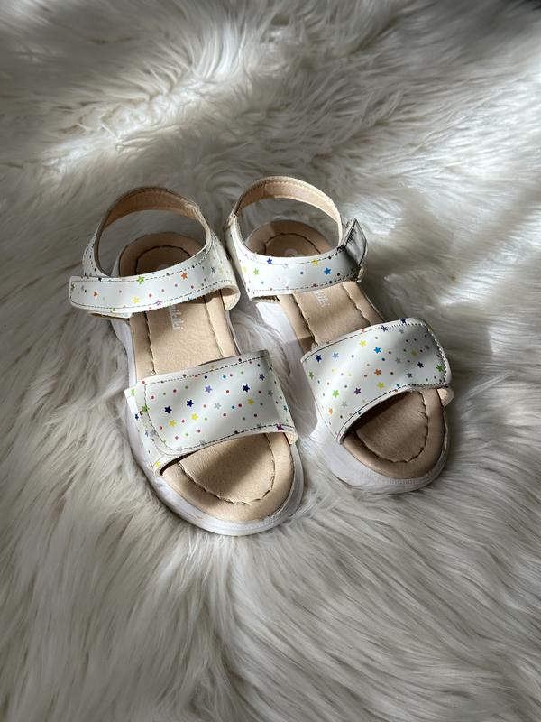 В наявності Босоніжки для дівчинки з шкіряною серединкою, на ліпучках, від шва до шва 16см В дуже гарному стані. Відправляю будь-яким перевізником