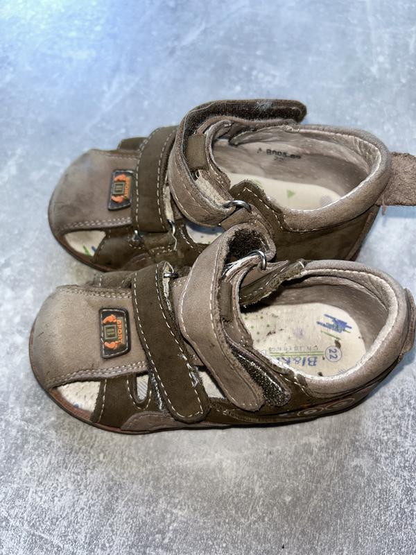 Дитячі босоніжки Bi&Ki, розмір 22 🔹 Стан: б/у, у хорошому стані, є сліди носіння (видно на фото). 🔹 Матеріал: натуральна шкіра. 🔹 Колір: коричневий. 🔹 Розмір: 22, довжина устілки ~14 см. 🔹 Фіксація: зручна застібка на липучках. 🔹 Особливості: ортопедична модель, жорсткий задник для підтримки стопи. ВІДПРАВКА ДЕНЬ В ДЕНЬ