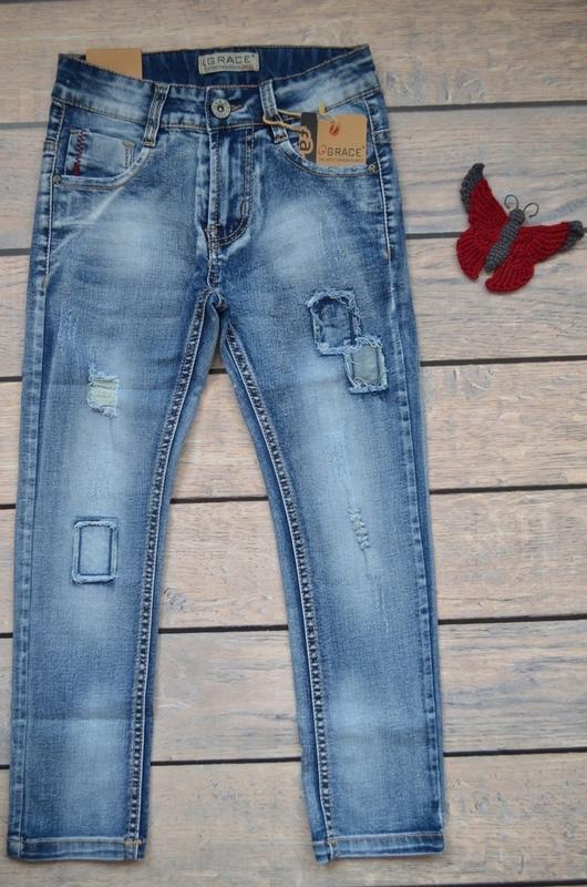 🔥🔥🔥СТИЛЬНЯЧІ ДЖИНСІ ПО СУПЕР ЦІНІ🔥🔥🔥УГОРЩИНА🔥🔥🔥 ЯКІСТЬ🔥🔥🔥 ✅Джинси для хлопчика "Grace"-230 грн Завужені джинси з потертостями і латками, відмінна якість, виробник Угорщина. Тканина приємна до тіла, трохи тягнеться (95% бавовна, 5% спандекс). У поясі є утягуюча гумка для регулювання повноти. 🔹зріст 116-довжина 71, крок 50, піт 28, побіди 36-2 шт (піт-напівобхват талії, побіди-напівобхват стегон)