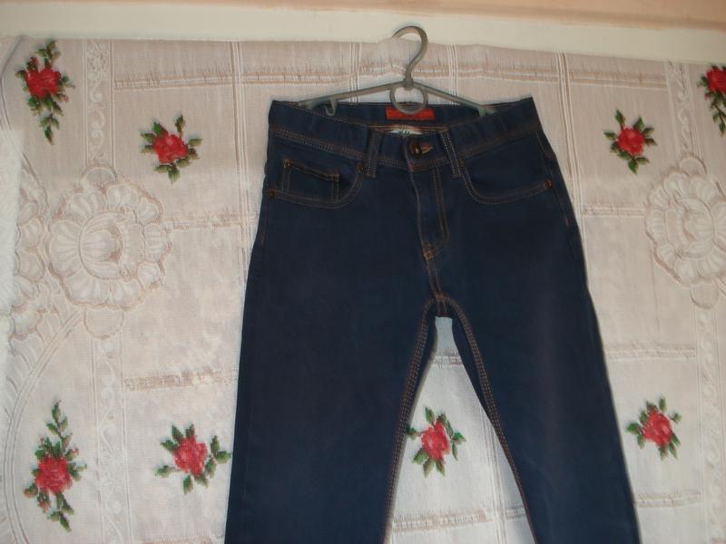 Джинси на хлопчика темно-синього кольору,спереду три кишені,ззаду два кишені,фірмові помаранчеві рядки,об'єм в поясі-69см.,посадка попереду-21см.,ззаду-32см.,покроковий шов-62cm.,довжина-83см.